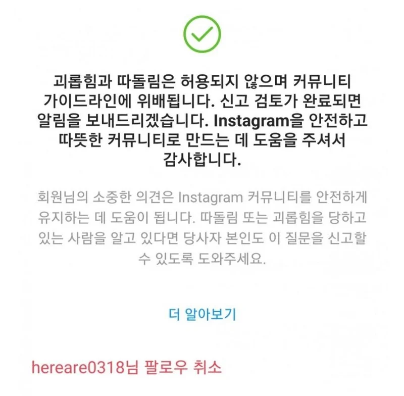 而該名女演員的粉絲為避免出現不必要的紛爭,便選擇檢舉這些留言,結果卻發現留言的主人就是金赫拉和另一名演員李雅珍。該網民解釋到「檢舉時,如果檢舉對象是追蹤名單中的人,帳號就會顯示出來,看來金赫拉和李雅珍是真不知道呀!」不少粉絲都譴責她們即使交情再深亦不應說這種騷擾性的話語!