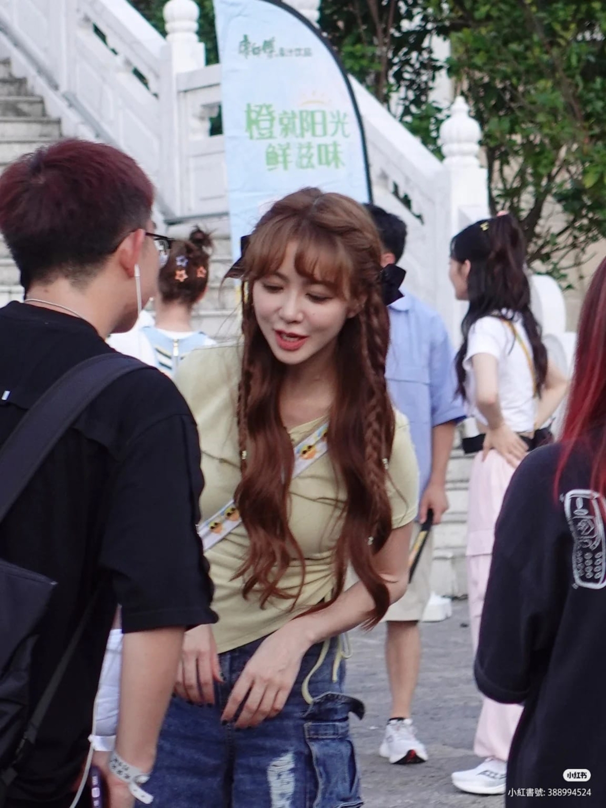有粉絲全程跟拍偶像,還將Fiona的生圖放上社交平台為偶像平反。可見Fiona擁有一頭濃密長曲髮,旁邊又綁了兩條小辮子及蝴蝶結,打扮衣著都非常年輕,與小9歲的何超蓮站在一起也沒有被比下去,仍然少女味十足!