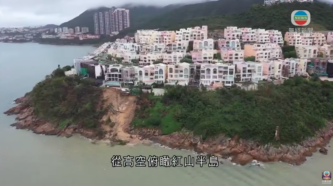 上星期世紀暴雨襲港,黑雨警告破紀錄懸掛超過16小時,多區發生至少60宗山泥傾瀉,當中港島大潭豪宅紅山半島第70、72及74號屋臨海方向的斜坡發生山泥傾瀉,部分地基外露並懸空,非常危險。事後70號及72號屋被揭涉及僭建,而74號屋的業主就拒絕屋宇署人員入內視察環境。