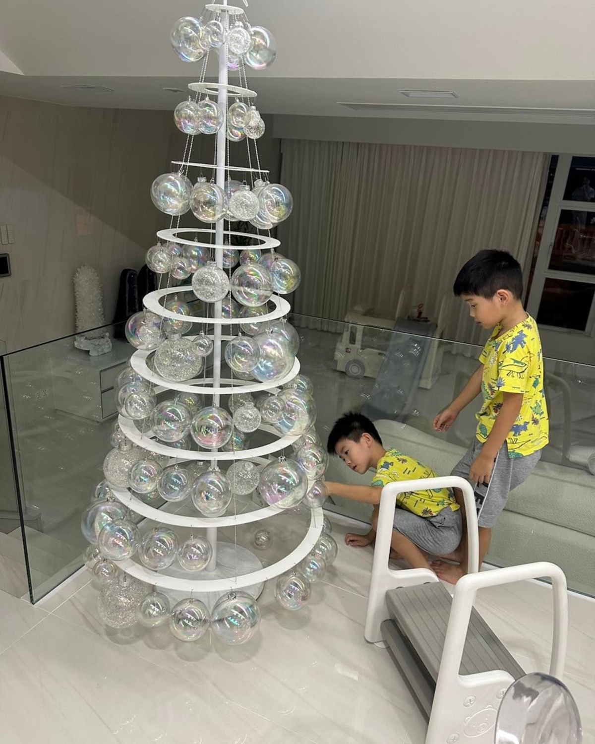 大宅三層高,更有私人花園,花園露台更設有巨型吹氣泳池,家中大廳又有滑梯、波波池、籃球機,可說是應有盡有。