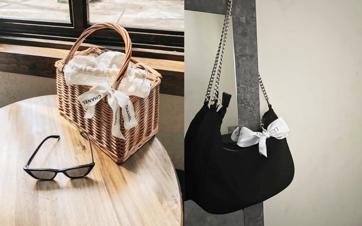 除了綁絲巾,大家亦可以在手袋的手挽位置綁上絲帶作點綴,不論是圍繞著手挽位綁還是簡單地綁蝴蝶結都很好看~