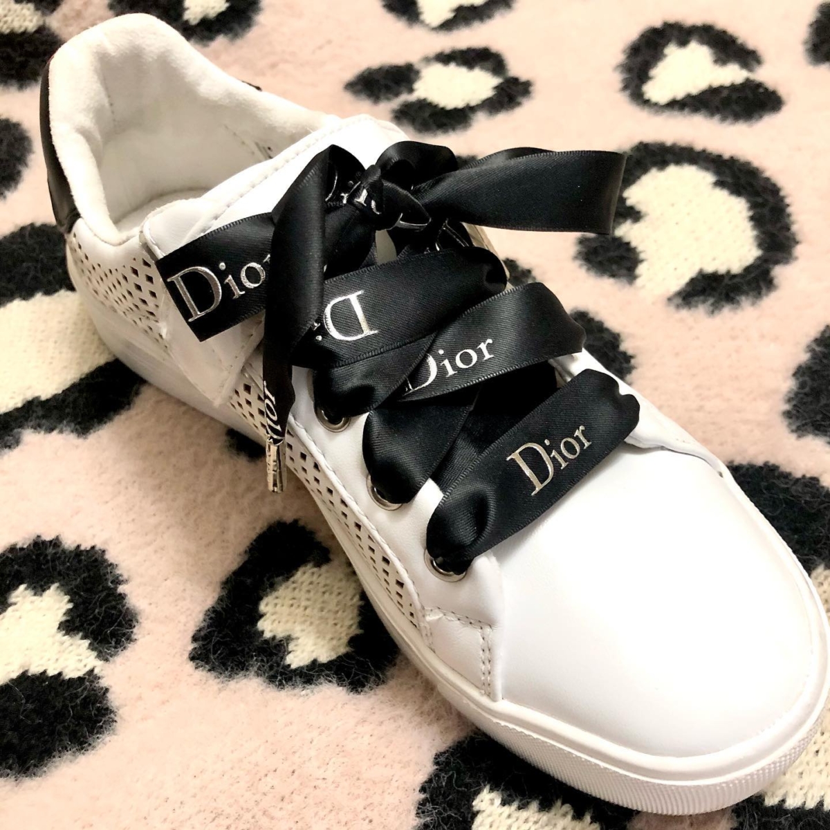 有時看厭了平平無奇的淨色鞋帶的話,也可以試試將絲帶當鞋帶用,簡約地印有名牌字樣的絲帶不會太花俏,又有時尚感!搭配小白鞋更是增添一分奢華的感覺~