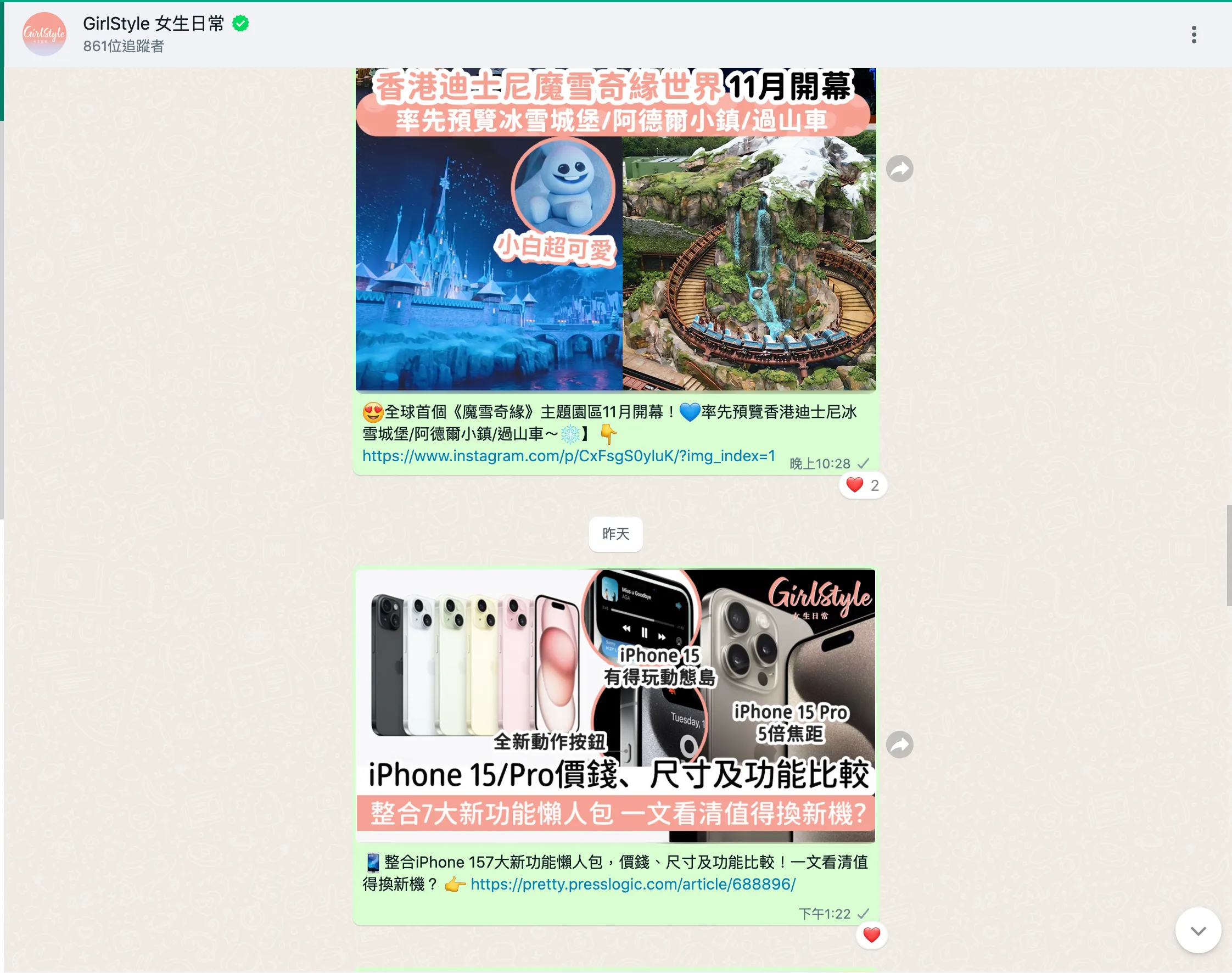為讓大家第一時間獲取玩樂打卡、扮靚、保養資訊,GirlStyle亦開啟了全新的WhatsApp頻道,一起探討了解最新的美妝護膚、時尚穿搭資訊,立即在WhatsApp上追蹤「GirlStyle女生日常」頻道!