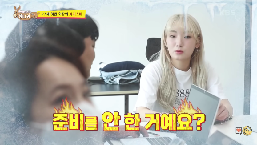 節目也呈現出HeeBab認真工作的一面,進入工作狀態的她非常果斷和目標明確,如果員工在開會前未有充分的準備,更是會毫不留情面地批評,所以看起來要拿到HeeBab的薪水也是要有十足的能力才可以哦!