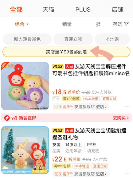 淘寶更推出全新「淘寶PLUS」升級服務,只需購買標示「淘寶PLUS」的商品滿¥99,就可以包郵直送到港,有標示「HK本地退」商品更可享免費本地上門退貨,仲有24小時專屬客服隨時支援,買淘寶變得方便又簡單!「淘寶PLUS」服務將會長期免費使用,用戶可以在淘寶香港首頁輕鬆找到進入「淘寶PLUS」頁面~