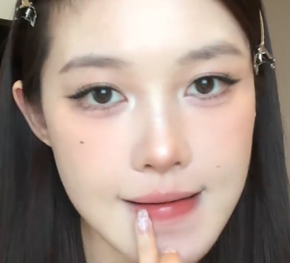 張員瑛的嘴唇比較小,卻看起來嘟嘟的非常可愛!先拿出唇線筆描繪唇峰輪廓,再用手指輕輕推開,讓它看起來更自然。
