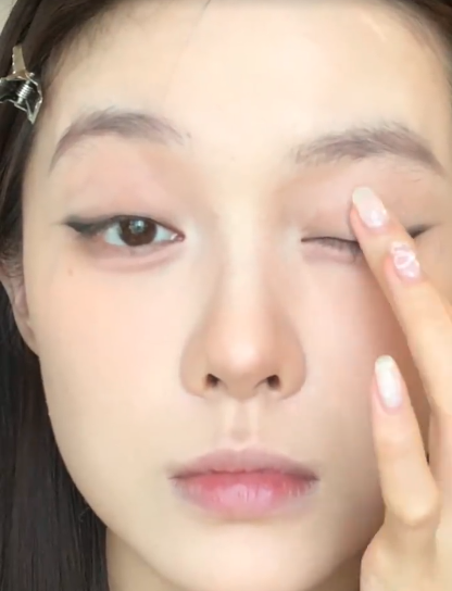 博主又提到,由於張員瑛的雙眼皮是前窄後寬,因此可以在雙眼皮比較寬的位置稍微提亮一下。
