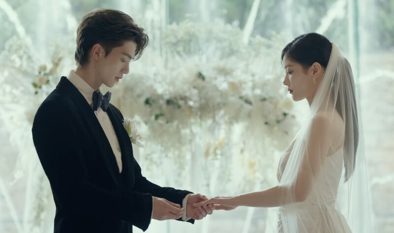 男、女主角在第一集就邁入禮堂結婚,雖然只是一場假的契約婚姻,但分別穿上黑色西裝和露背婚紗的兩人實在是太俊男美女了,兩人又非常曖昧的對視,所以即使明知道是假結婚,觀眾看到都忍不住要原地尖叫!再加上金裕貞又說:「不可以動搖,反正不是真的結婚」,宋江則說:「又只有我是真心的」,看來兩人早已為對方心動~
