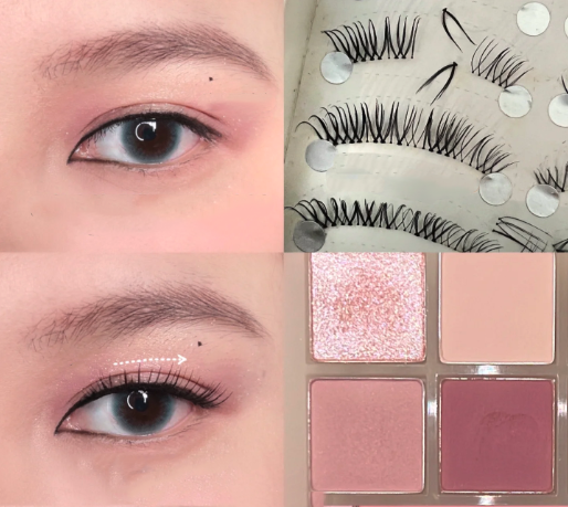在畫上卧蠶提亮後,再痴上假眼睫毛,要前短後長,其後不需要掃上睫毛膏,這樣就完成了,是不是很好看呢?