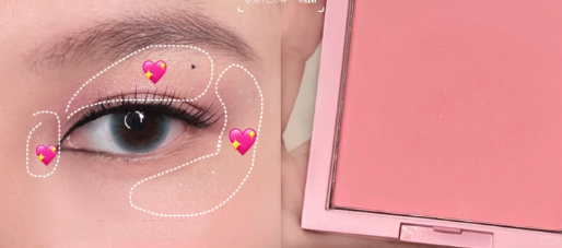最後再使用桃色胭脂分別掃在上眼皮、眼角、眼尾部分,塑造出自然可愛感,這樣眼妝就完成了!快來試試吧~