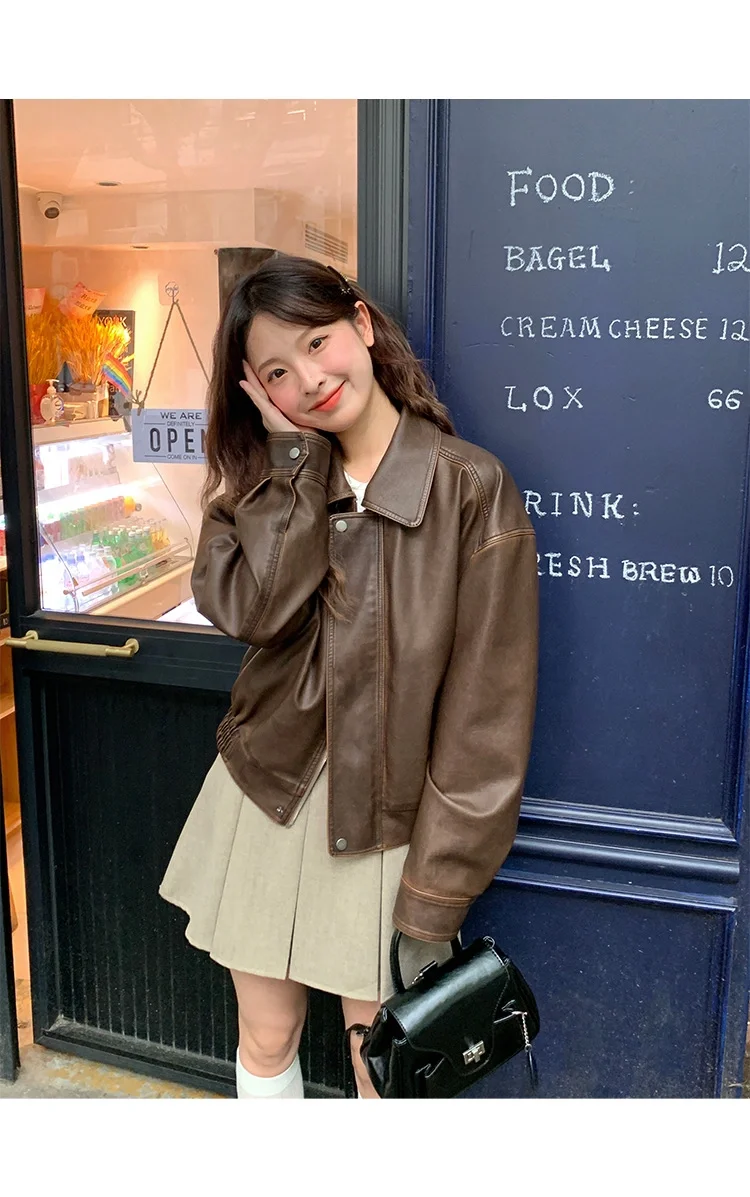 皮外套是每個秋冬必備單品之一,但不同於往年清一色的黑色皮外套,今年則更流行美拉德潮流的啡色皮衣。皮衣絕對是經典不過時的秋冬單品,無論是搭配少女味的短裙還是中性風的西裝褲,都十分百搭易襯,不失帥氣!