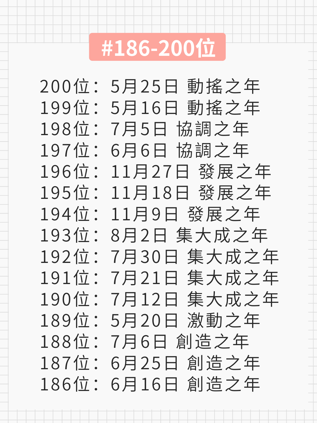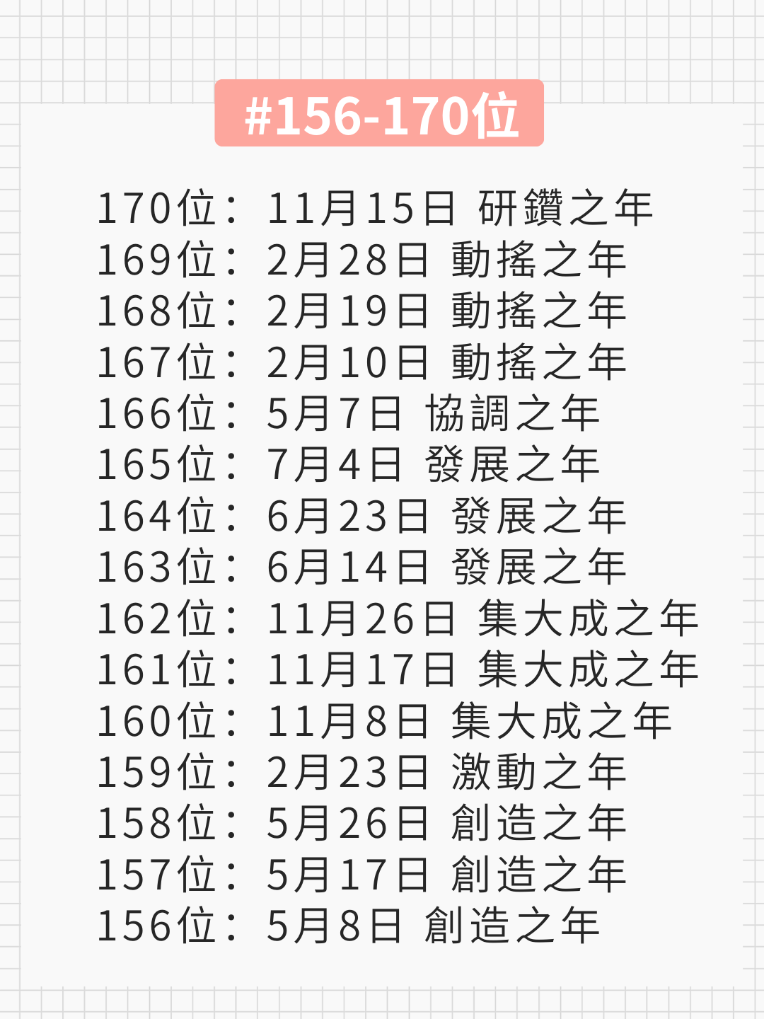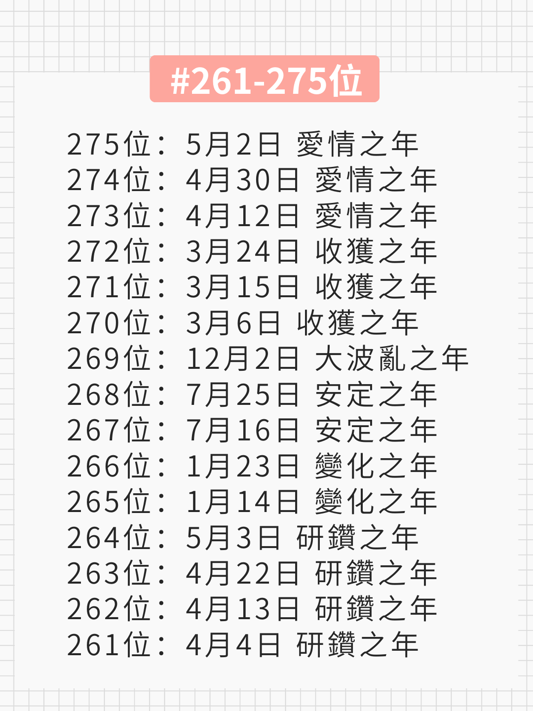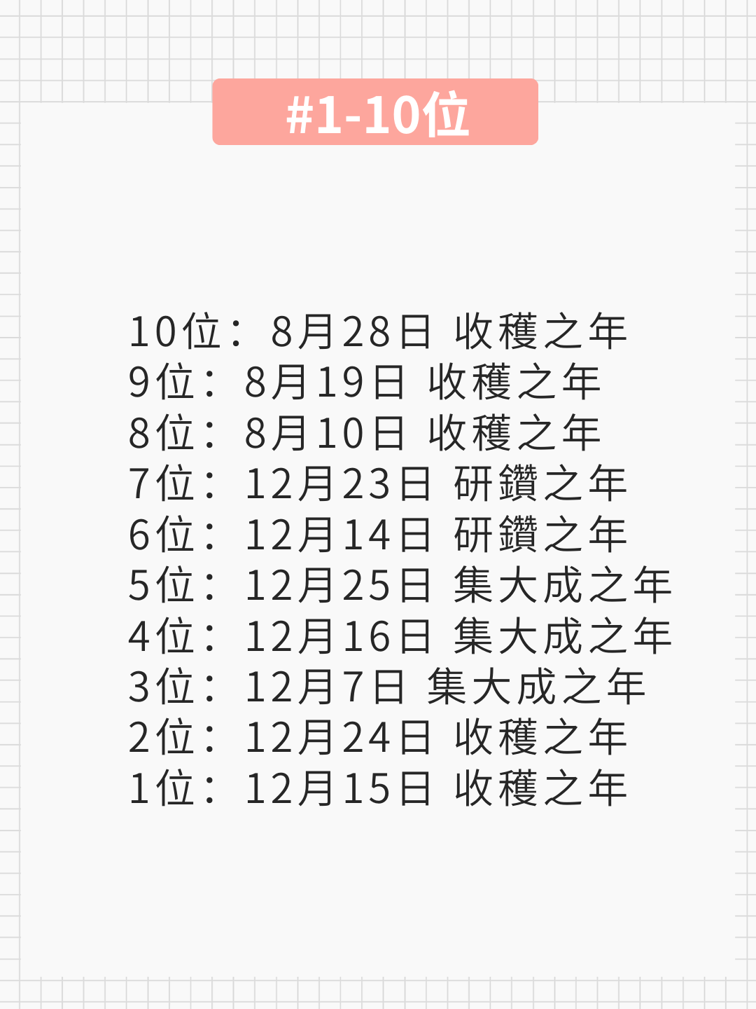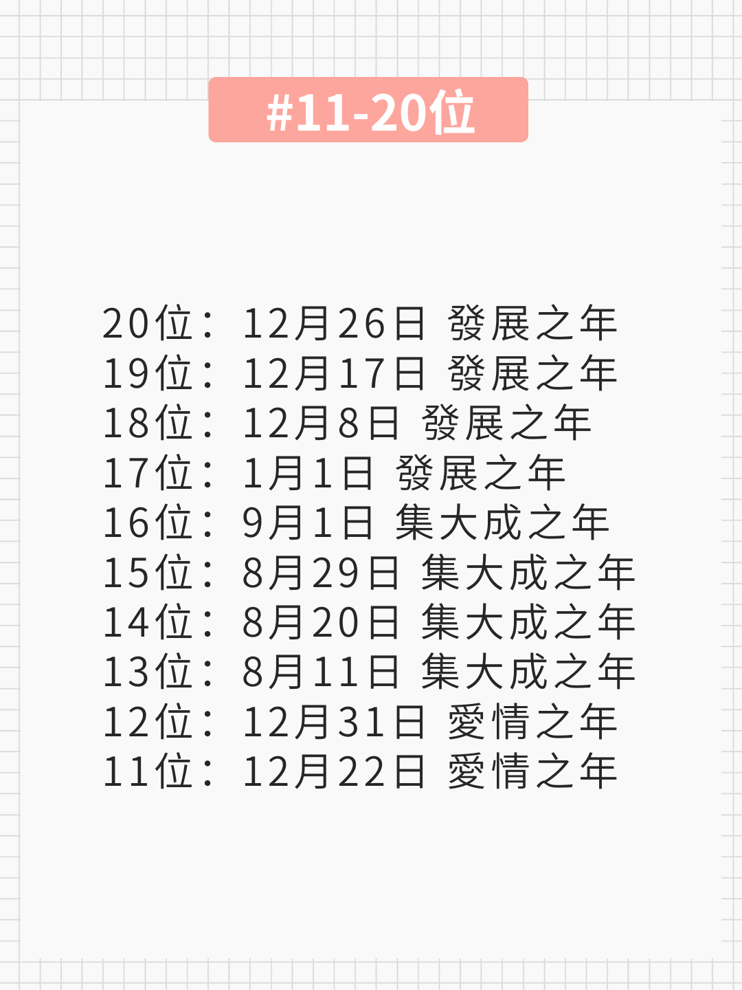 排名321至335名的朋友,當中有人會迎來「研鑽之年」,提醒你們不要將想做的事再拖延到下年,下年將會是充實的一年~