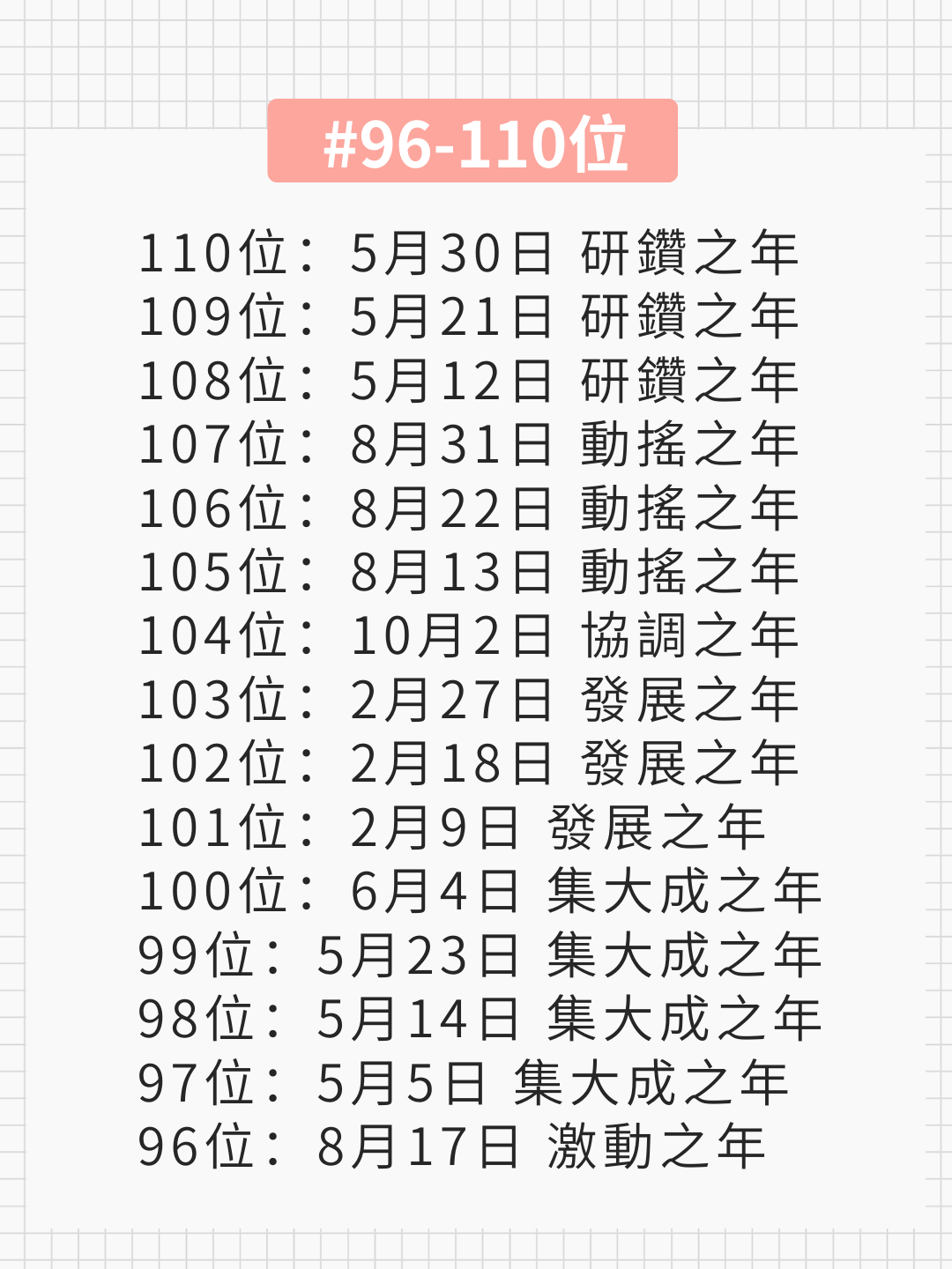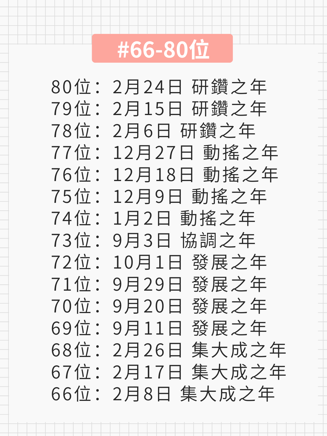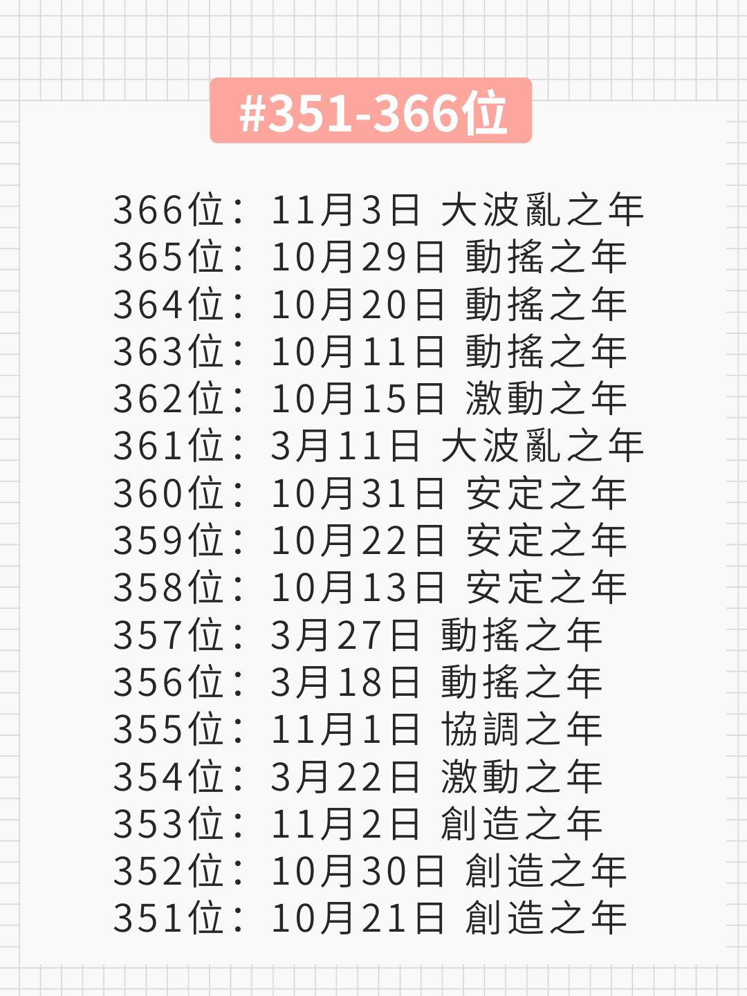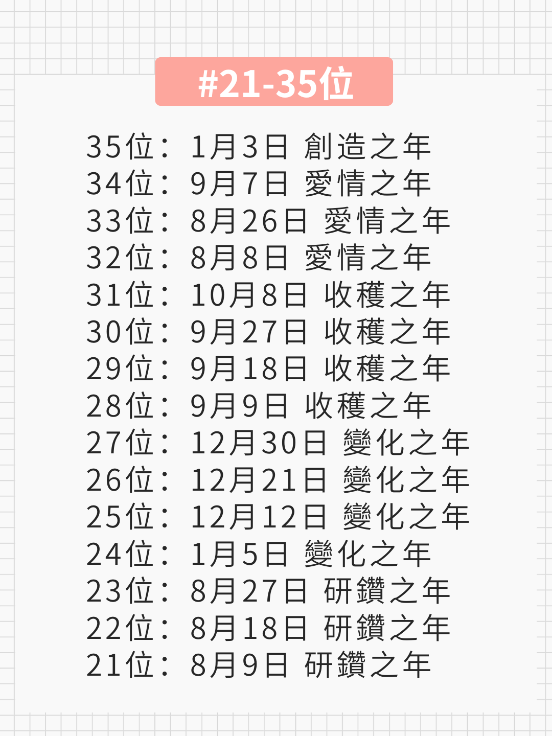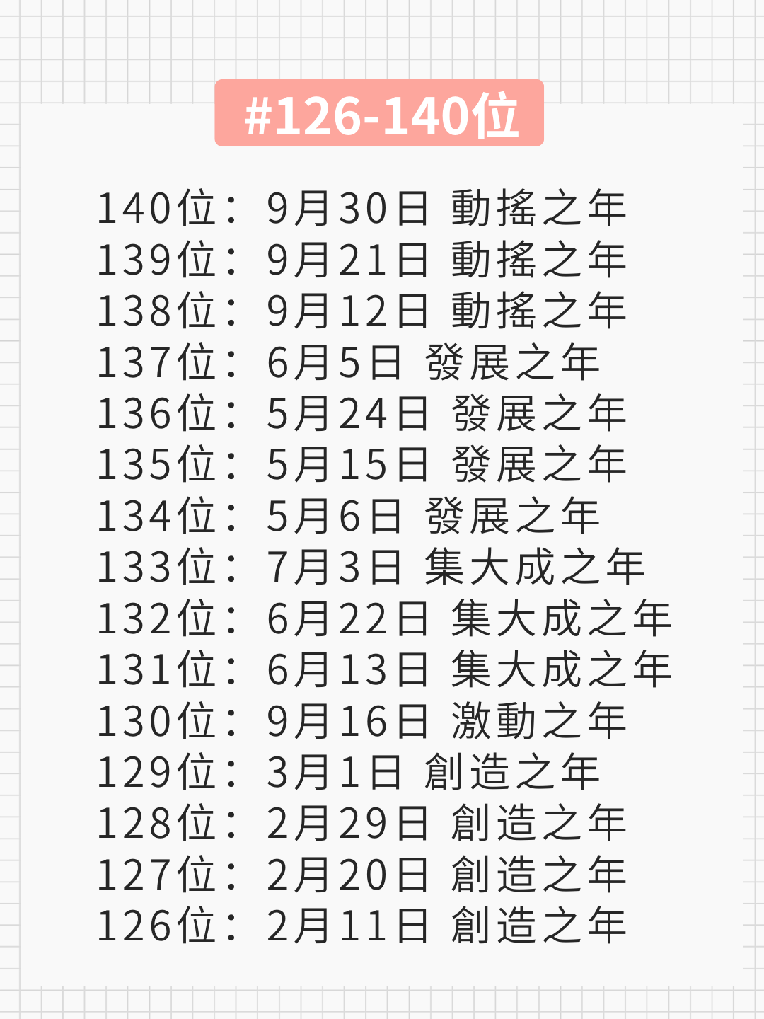 排名321至335名的朋友,當中有人會迎來「研鑽之年」,提醒你們不要將想做的事再拖延到下年,下年將會是充實的一年~