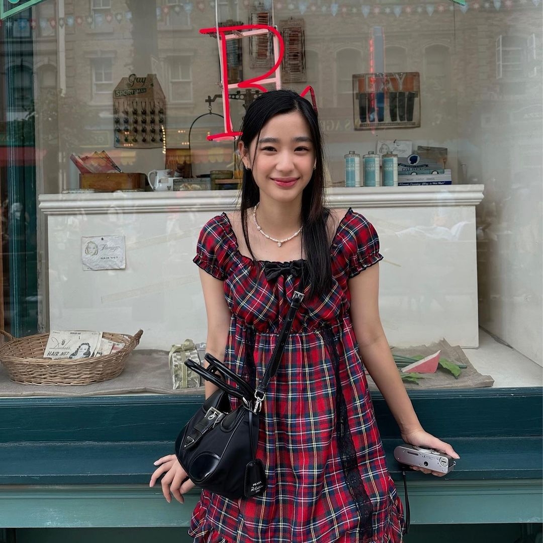 她的日常穿搭也成為同齡女孩的穿搭範本,簡單一條格仔裙、背心配牛仔褲都超有魅力,果然是人美穿什麼都好看~