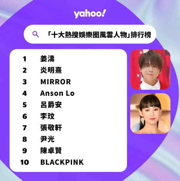 Yahoo全年搜尋人氣榜2023結果公佈!BLACKPINK排第十?姜濤三度奪冠!