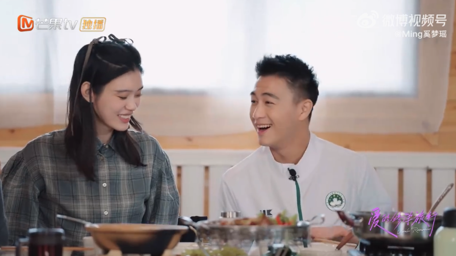 在節目中大家在討論自己是怎樣公布戀情時,何猷君就翻出了當時與奚夢瑤官宣的微博貼文,配圖就是兩人的結婚照,更提到照片中的自己比奚夢瑤高。
