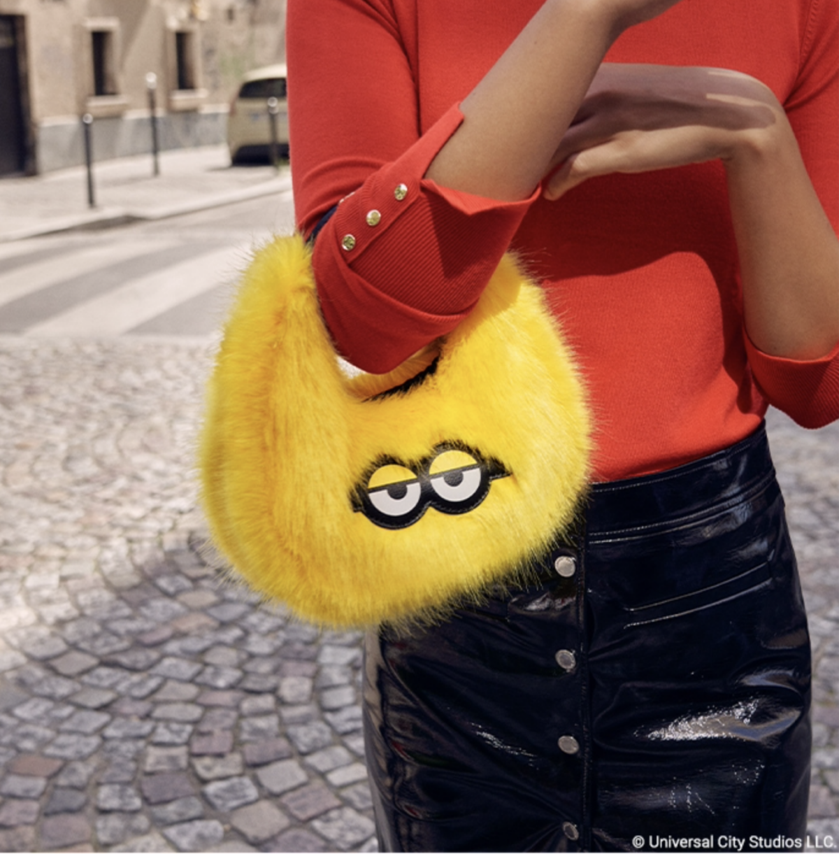 「KIPLING LOVES MINIONS」聯名系列合共推出七款可愛造型的包包。第一款是彎月型手提斜背包-KEVIN,毛茸茸的手提斜背包能夠拆下肩帶,變成手提包,非常適合日常使用。