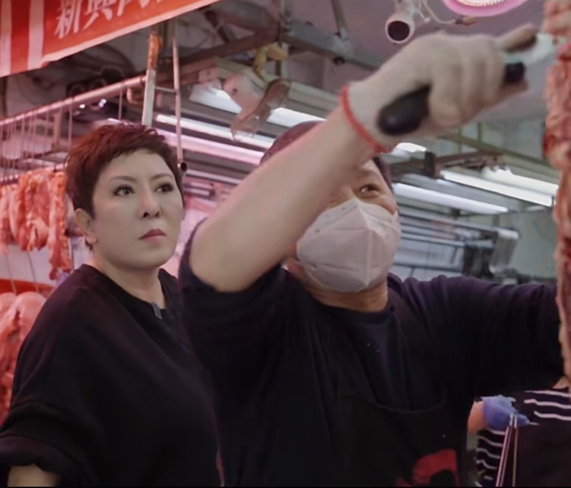 向太穿上一件全黑色的長裙到街市買菜,非常低調平民化!在影片中,「街市阿姐」一見到向太,就即刻超級熱情地說:「嘩!今日咁得閒出嚟嘅?想買豬肉食啊?」,之後向太亦十分禮貌地回答:「係啊!」,全程都表現得相當親民,絲毫沒有擺出明星架勢!