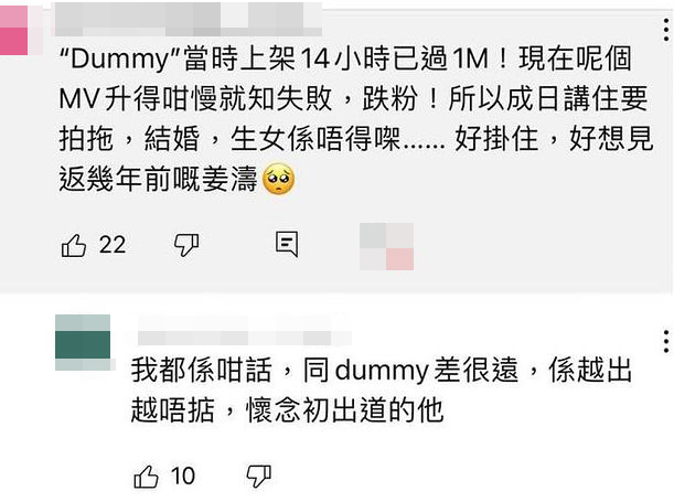 更有不少網民於MV下留言指「MV好失敗」,直斥:「咀到Cheap晒,仲要喺咁多Fans面前做,以為好有承擔,好有型!姜濤再咁落去,會走好多粉!好自為知!」、「MV升得咁慢就知失敗,跌粉!所以成日講要拍拖、結婚、生女係唔得㗎」、「個MV就係為咗最後場咀戲,自己整死自己」、「同dummy差很遠,係越出越唔掂,懷念初出道的他」等。