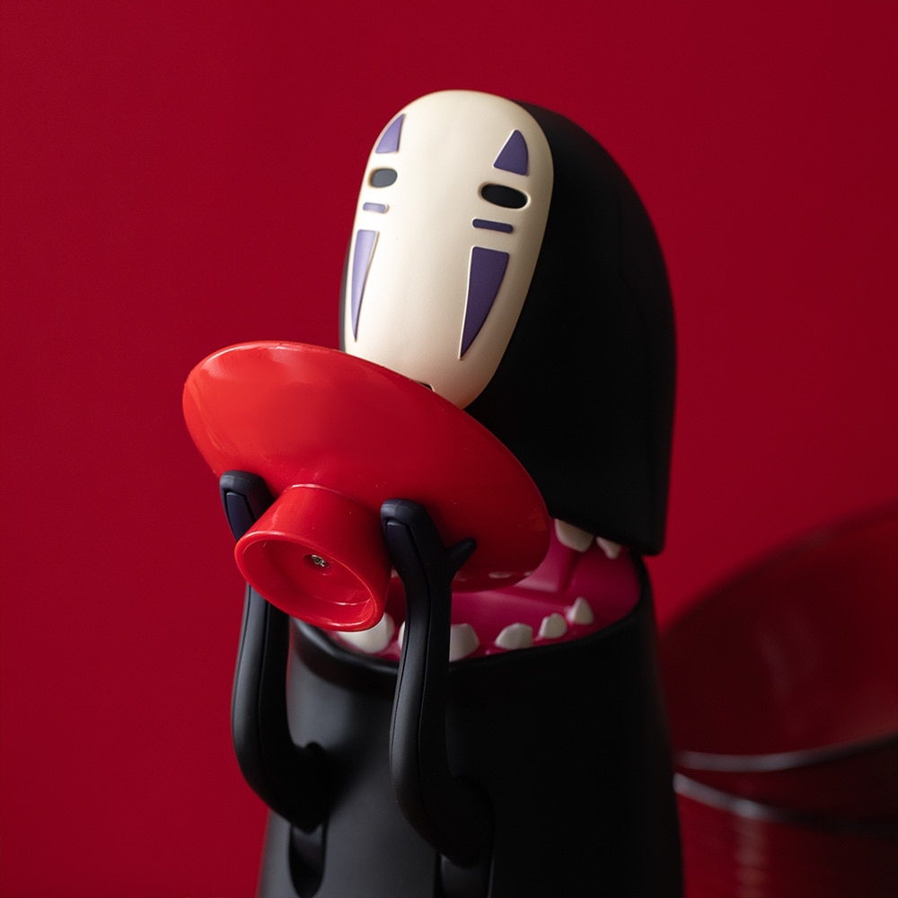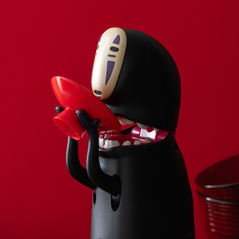 這款「無臉男錢罌」的造型十分可愛,只要將錢幣放在無臉男雙手拿住的碗子上,它就會即刻主動倒入嘴裡面,之後還會發出打嗝聲,就如同它在劇情中「吃人」的畫面,非常搞怪,有興趣的話快去官網看看吧!