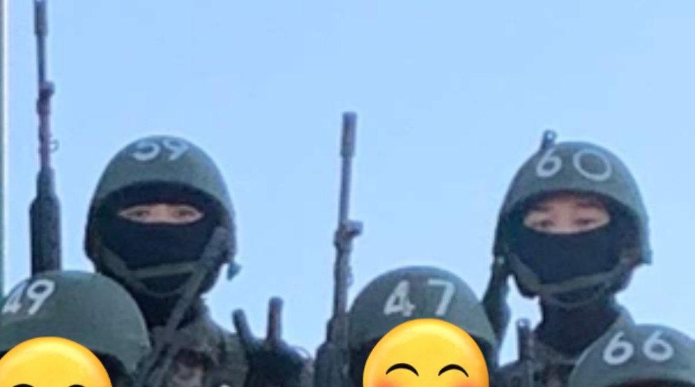 除了RM和V以外,Jungkook和Jimin的近照也被曝光!不過畫風就同上面兩位有些許不同喇~近日兩人在軍中和其他新兵一起合照的照片流出,兩人站在隊伍的中間,其中戴上面罩的Jungkook還很自然地將手靠在Jimin和另一位新兵夥伴身上,而Jimin戴上頭盔後反而讓原本babyfat的臉頰還被擠出來,相當可愛!兩人的超自然姿勢也看得出與其他新兵相處融洽!