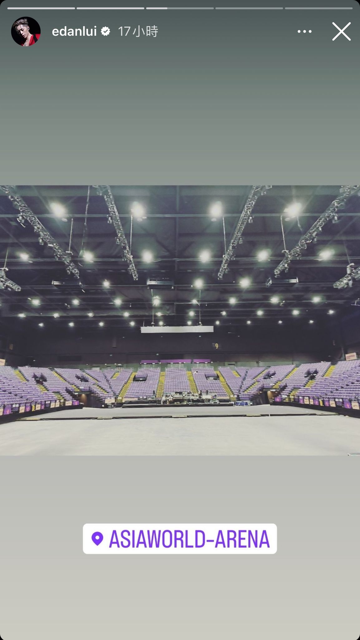 另外,日前呂爵安(Edan)也在IG Story分享了一張在亞博的踩台相,從分享中的照片可見,演唱會的舞台仍然尚未建起,亦未看到有任何機關。