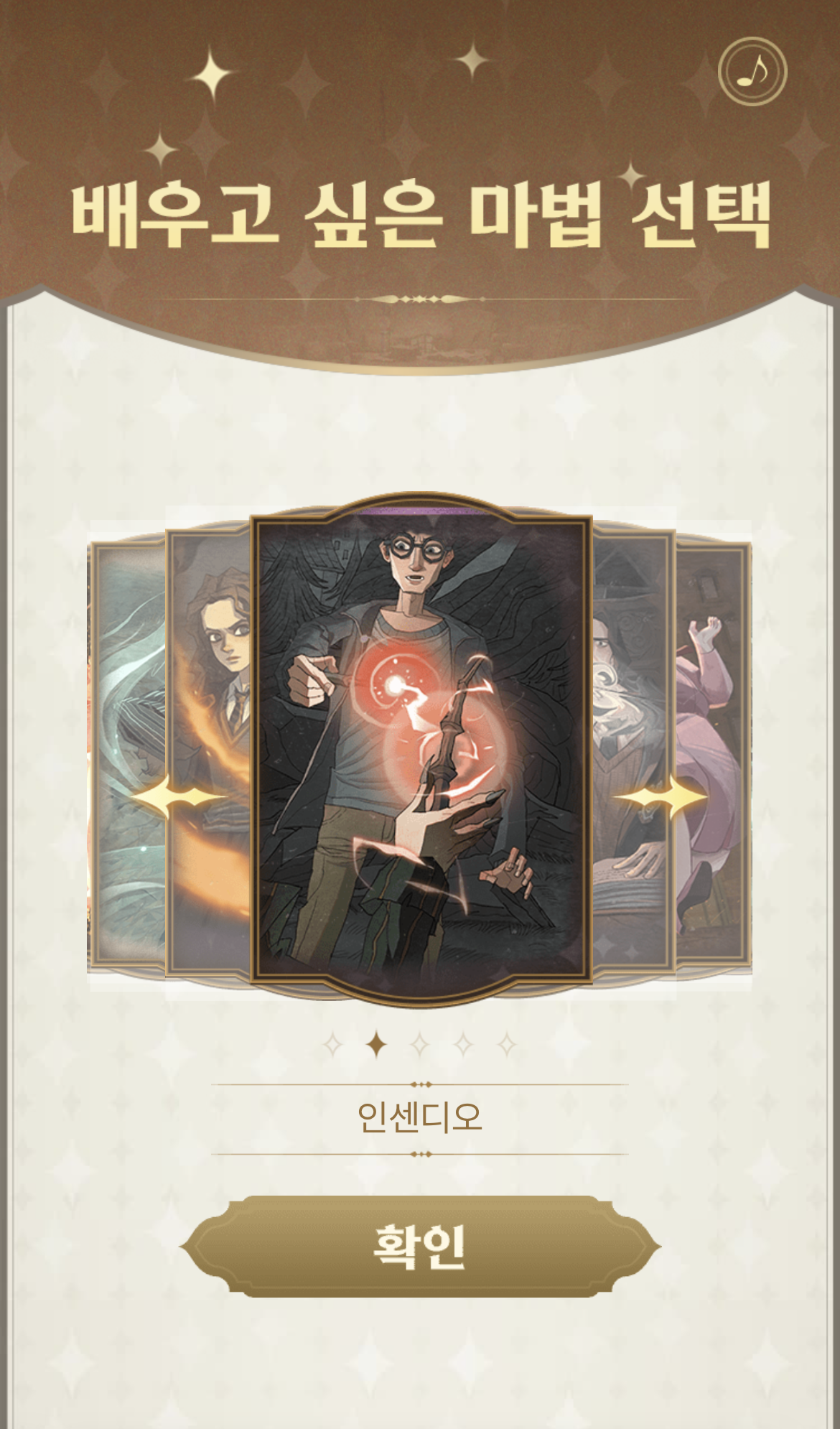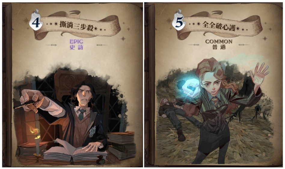 然後大家就要選擇你想學的魔法,一共有五張卡牌:「全全破心護」、「撕淌三步殺」、「去去武器走」、「吼吼燒」及「衛斯理煙火」。