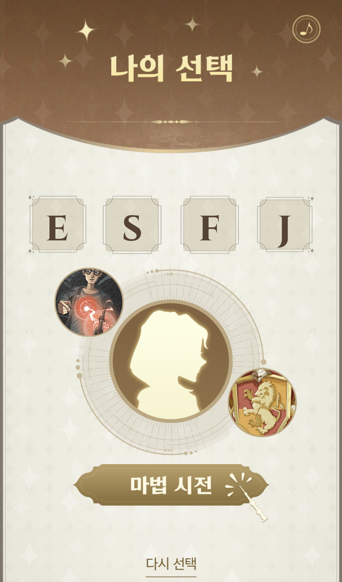 之後就可以按下有魔杖在旁的「魔法啟動」鍵!或者想重新選擇學院、MBTI或魔法的話也可以按最底的「重新選擇」鍵。