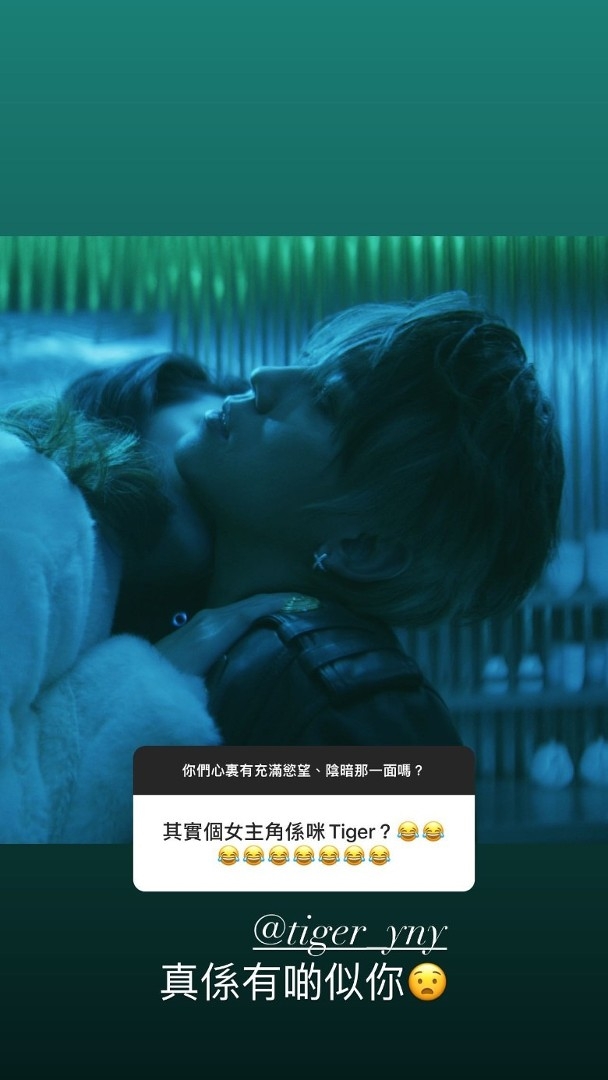 而另一位成員姜濤昨日就公開了單曲《黑月》封面照,相中女主角親吻著姜濤的頸子,畫面充滿慾望,掀起粉絲熱議~而有網民就錯重點,笑言女主角似足隊友邱傲然(Tiger),就連姜濤本人都發文表示:「真係有啲似你。」引發網民爆笑。
