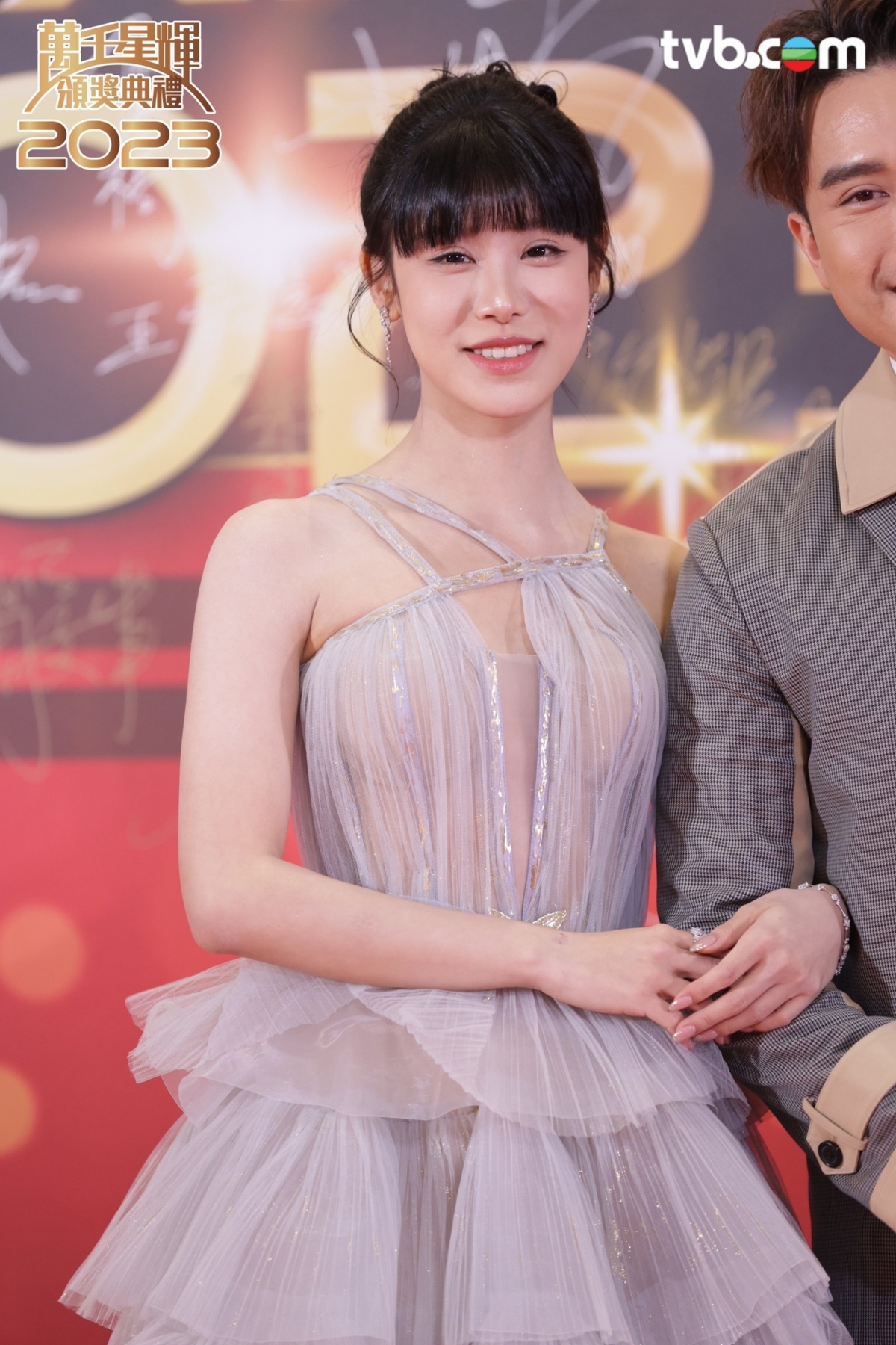 而同劇的李施嬅當晚帶病出席,李施嬅身穿露肩晚裝裙亮相。上身的超大蝴蝶結非常搶眼,簡單的白色和啡色拼接設計,造型大方得體。有報導指李施嬅原本計劃前往美國舉行婚禮,但因為《萬千星輝頒獎典禮》所以特意延遲行程。
