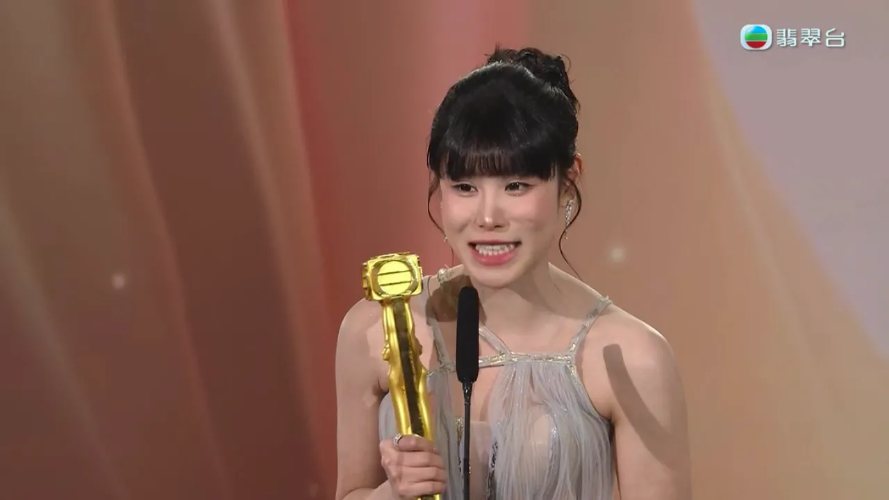 首次獲得「最具潛質新人」獎項的古佩玲以一身白色晚裝亮相。雖然造型非常漂亮,但不少網民表示她外貌有點奇怪。古佩玲的臉上突然出現不明凹坑,加上在發表得獎感言時蘋果肌一直僵硬,有一種說不出來的奇怪!