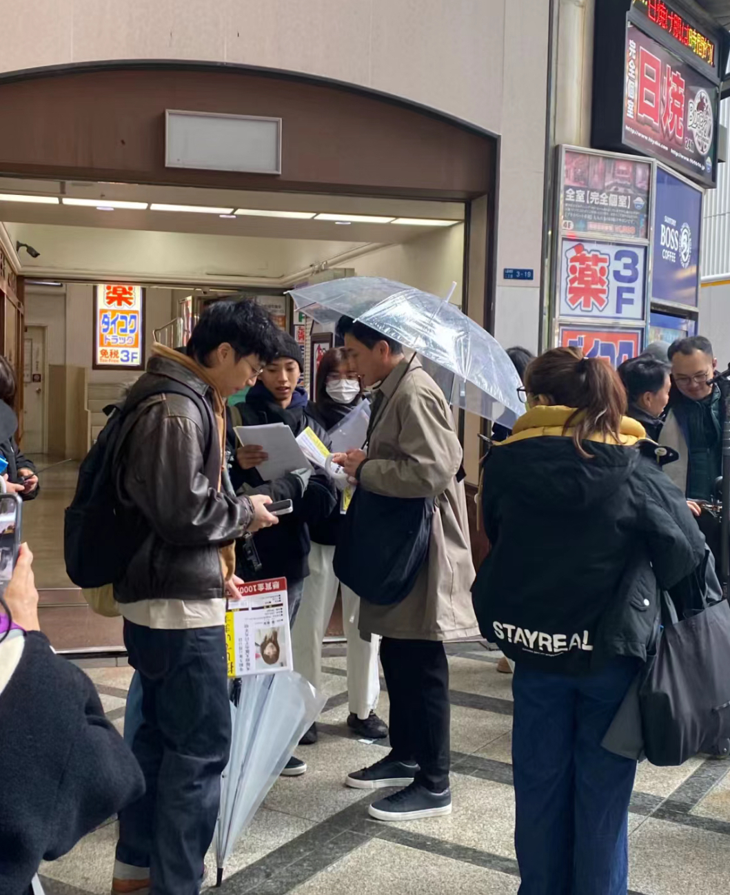 黃宗澤日本大阪街頭派傳單被偶遇,吸引一眾路人圍觀,有粉絲冒雨到場支持偶像