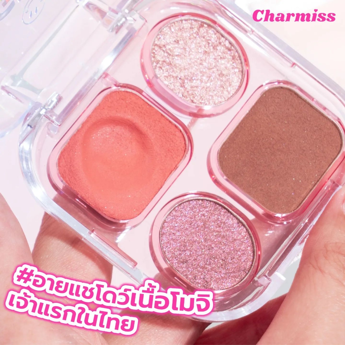不少人都喜歡迷你小巧、功能性強的眼影盤,泰國品牌Charmiss輕鬆做到這點!Charmiss眼影盤顏色俱全,設計為兩格啞光色及兩格亮閃色,小巧可愛,顯色度較高,不易非粉,非常適合日常使用;而Charmiss的腮紅膏亦是不少泰國女生的首選,只需用手指輕輕塗抹就能輕鬆上妝,讓肌膚白裡透紅。