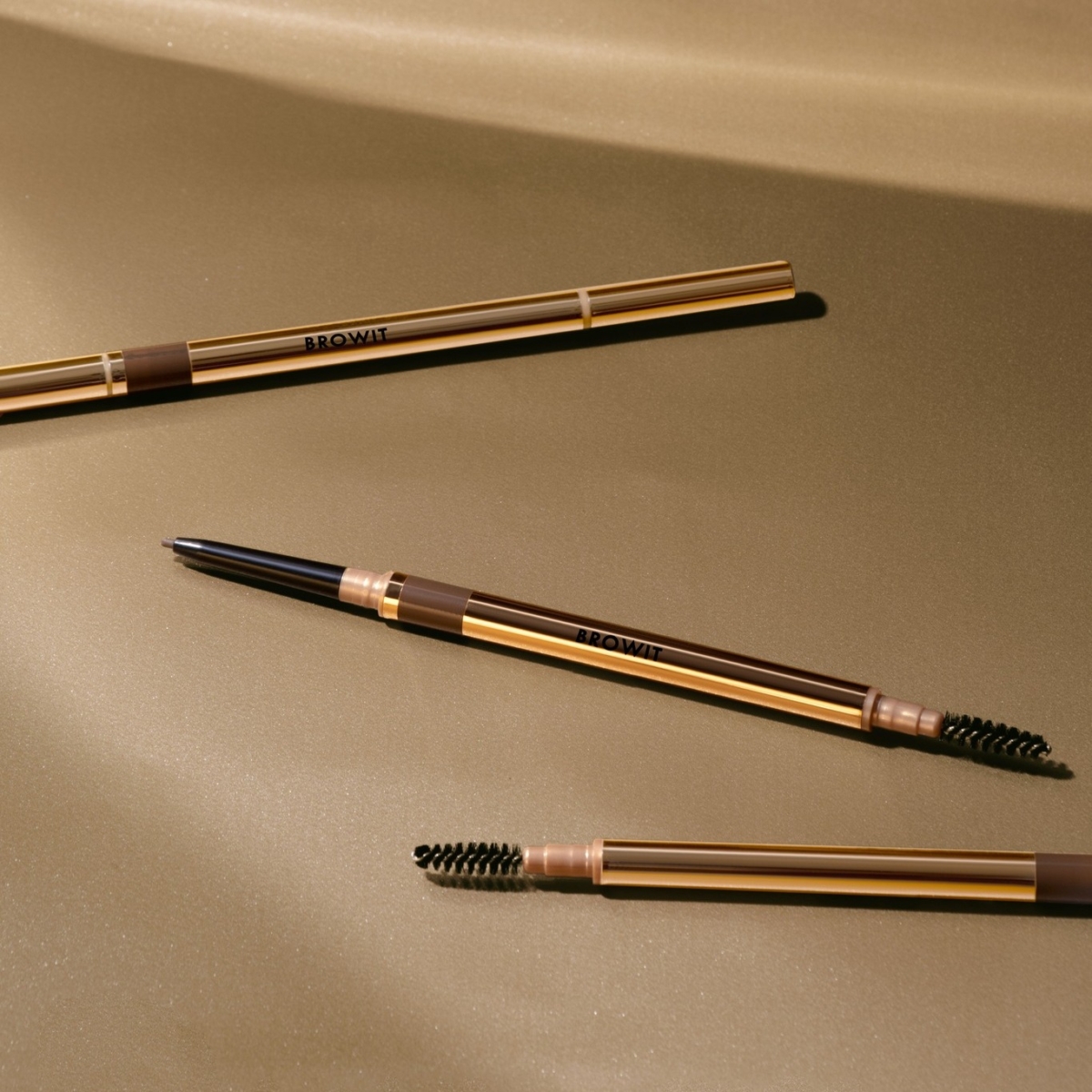 由泰國人氣化妝師Nongchat所創立的品牌BROWIT,絕對是泰國眉眼彩妝界的No.1,其產品在泰國獲獎無數,幾乎人手一支的程度;BROWIT的「持久塑形2in1氣墊眉筆」和「極細防水抗暈仿真眉筆」都是採用2in1的雙頭設計,斜角眉筆勾勒線條易掌控,另一頭的眉粉更是輕鬆暈染,十分適合新手!