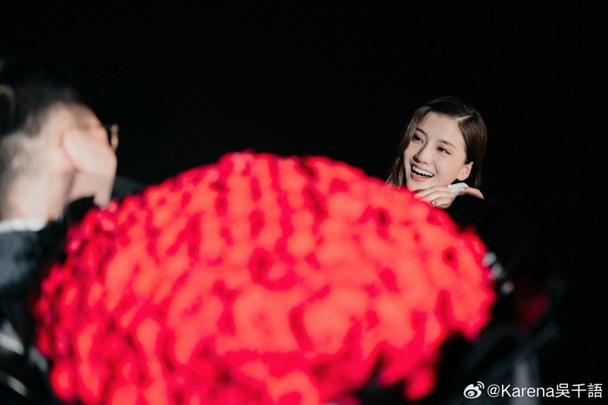 而且兩人的身後有一部白色名車,吳千語手上捧著一大束紅玫瑰,可見施伯雄為了求婚而悉心準備了不少驚喜,千語也有感動到落淚!