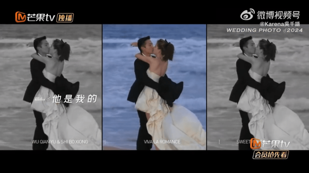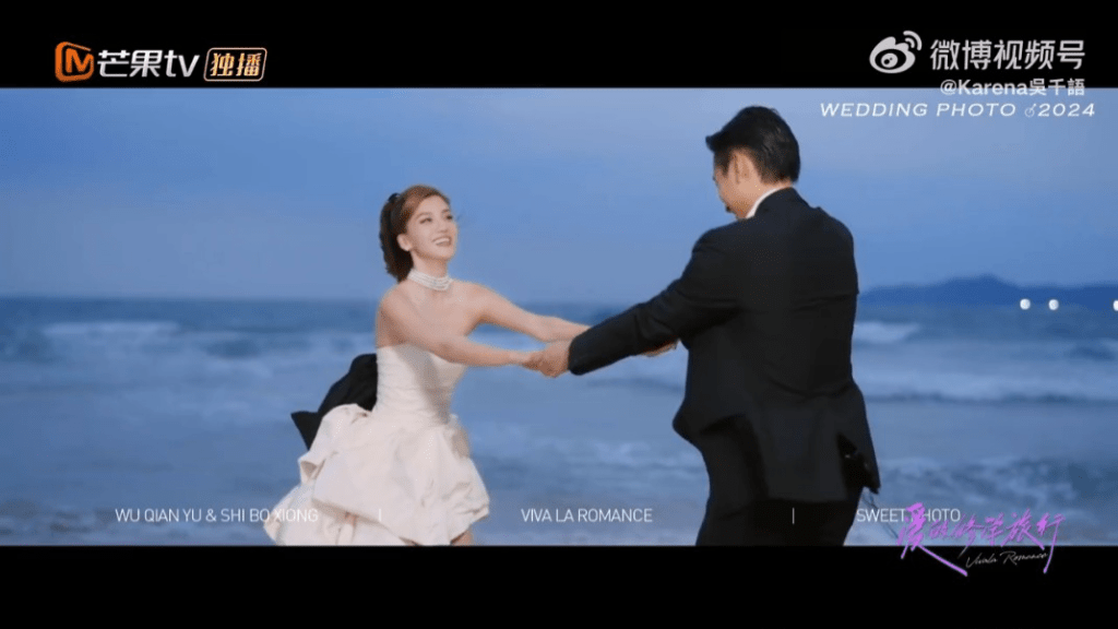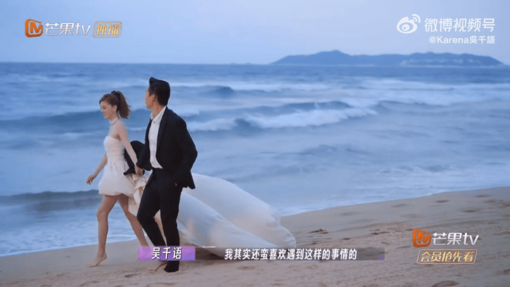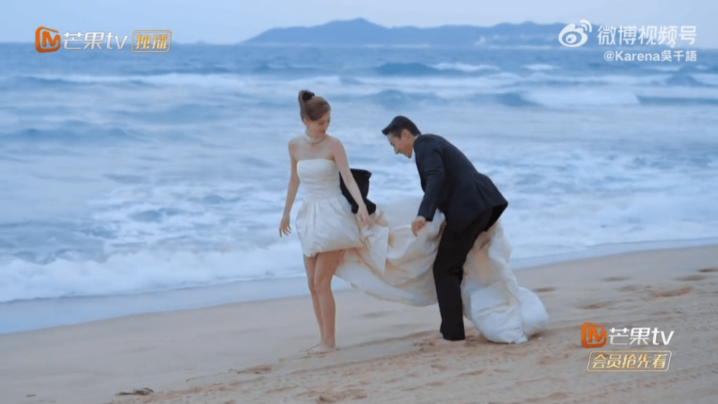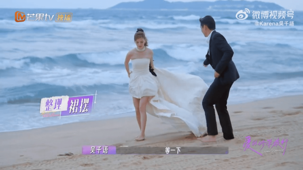 現年30歲的吳千語與百億富三代施伯雄(Brian)在去年12月完成了證婚儀式,兩人早前更透露將會於今年8月在意大利補辦婚禮。而日前吳千語就在社交平台轉貼了內地戀愛真人騷《愛的修學旅行》中播出的海灘婚照拍攝花絮,不少網民看後都大讚畫面超唯美!
