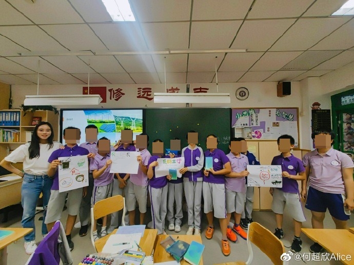 在去年6月,何超欣在清華附屬小學任教,同時她亦在微博曬出為學生授課的照片,還自稱「小何老師」,上課時課室的氣氛亦相當融洽,因此不少人都猜測她成為了一名小學老師。而日前她又曬出在飯堂吃午餐的照片,還附上地點是「北京寓園教工餐廳」,再寫上:「今天吃最暖的瓦罐湯,總消費8元」。