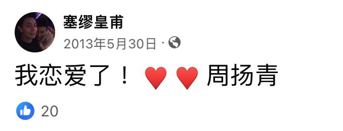 其後皇甫聖華又在2013年5月1日一連分享兩張與周揚青的合照,分別寫上:「我愛你,我的寶貝」、「愛能改變我們」,令不少網民猜測她早前示愛的對象就是周揚青。