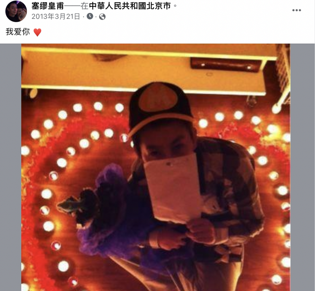 在2013年皇甫聖華又發文寫上:「我愛你」,相片中的她坐在以蠟燭圍成的心型圈內,並手拿鮮花和信件,疑似準備向某人示愛。