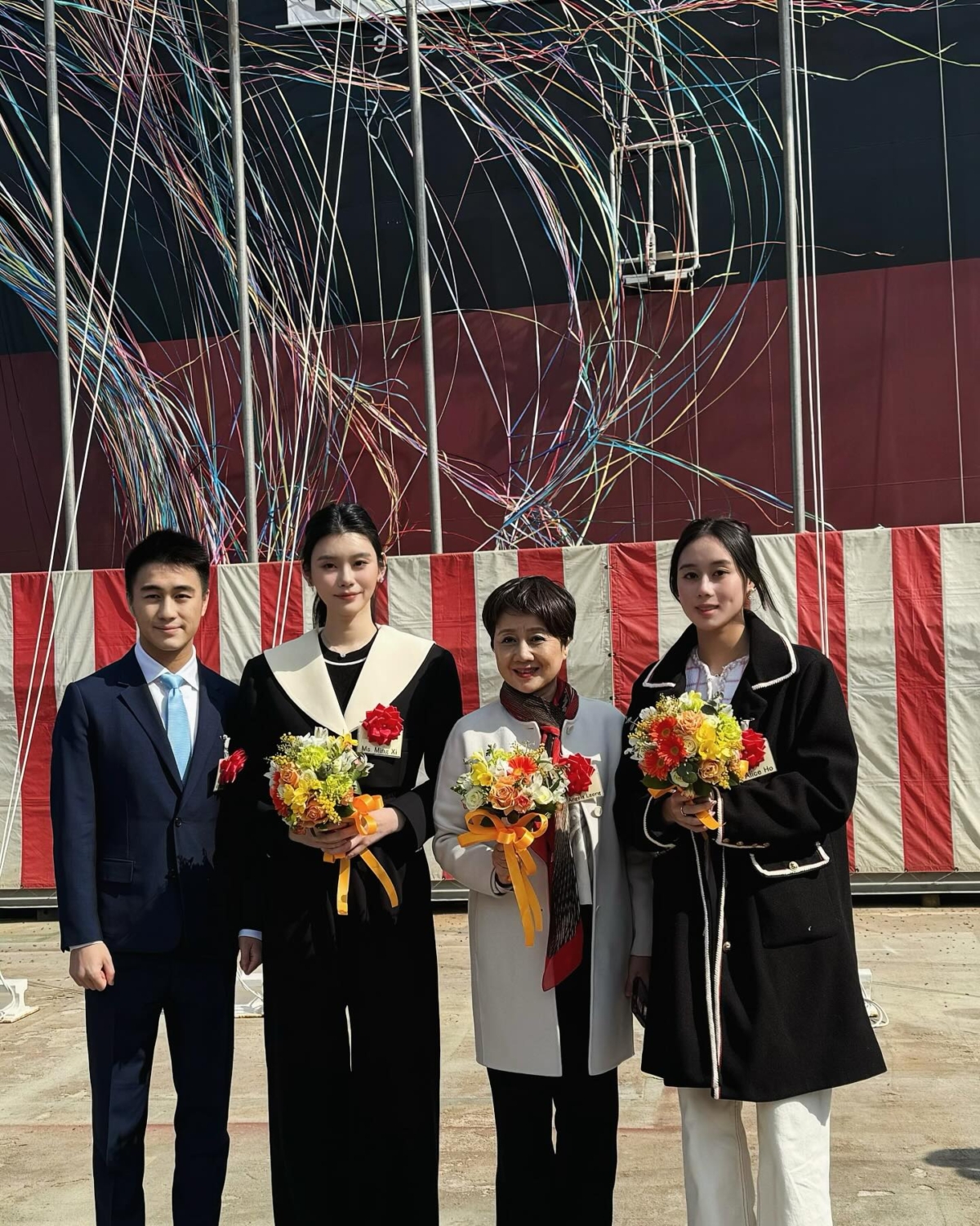 何猷君近日在IG曬出影片並寫道:「夢瑤生日快樂,希望你享受這個難忘的下水禮。我們船隊美麗的成員。」奚夢瑤在影片中不時與老公對望,最後拿著錘子敲響了啟動儀式,其後身後人紛紛鼓掌,儀式順利完成。而奚夢瑤亦曬出現場盛況,可見三位女士手上拎著鮮花,奚夢瑤更是站在四太梁安琪身旁,可見關係親密。