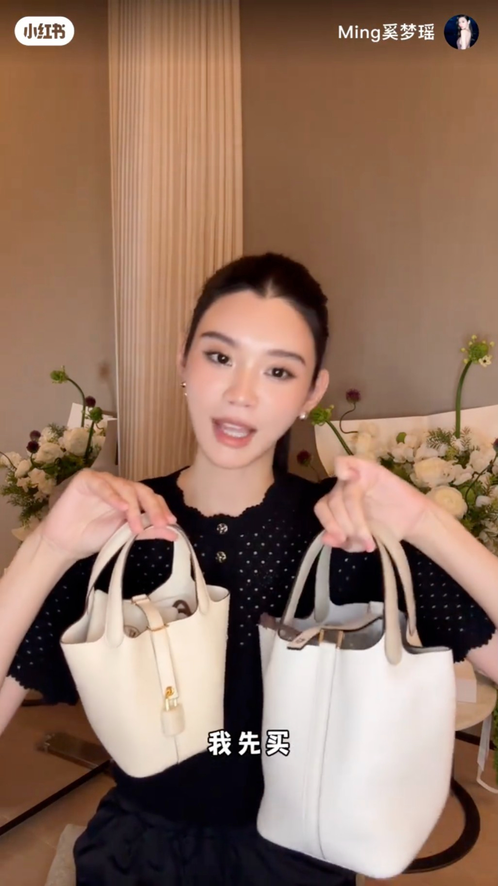 奚夢瑤近日在內地平台小紅書上載了開箱片,曬出一系列奢侈單品,而其中最引人矚目的必定是她送給2歲女兒的Hermès Micro Picotin14手袋,她說到:「那天在逛愛馬仕的時候,就看到它有個很小的菜籃子,我就覺得好可愛,想給我女兒買。」更表示女兒拿著就特別可愛!隨後她也入手了同款不同尺寸的手袋,將作為母女袋之用。據知這兩款手袋售價約27,000港元及29,000港元,可見奚夢瑤寵女無極限!
