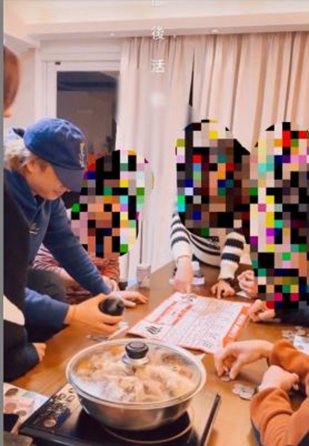 Jer早前被爆在英國度假期間用IG「撩」性感KOL,回港後他受訪時回應到:「下次會小心啲,唔敢亂講嘢」而今日網上就流出一張Jer在緋聞女友Coey Ho家中食團年飯的照片,圖中疑似是Jer的男子低頭搖骰,身邊3位女子被打上格仔,而檯上就有一大煲火鍋,相信是食團年飯!