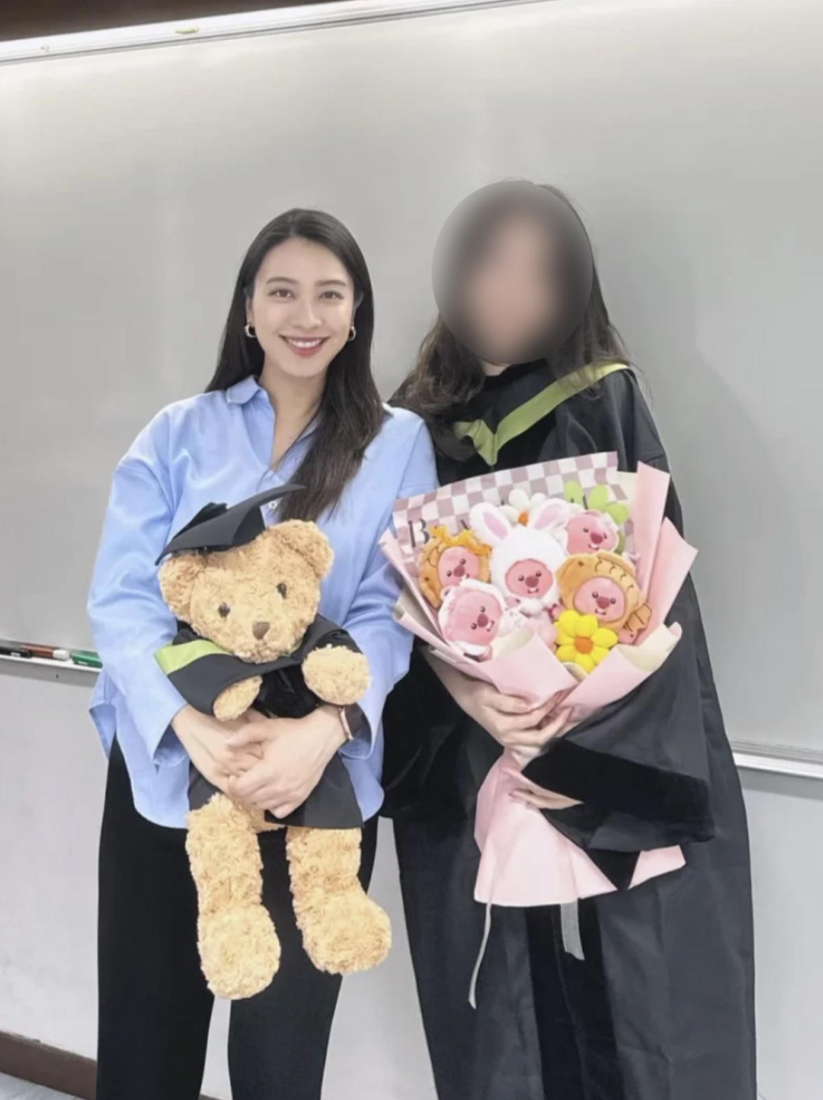 前港姐季軍朱千雪(Tracy)近年淡出幕前轉型做大律師,其後更重返母校香港中文大學兼任講師。不過一舉一動仍然受到網民的關注,早前朱千雪更突然在IG宣佈即將成為媽媽,不少網民和圈中好友都紛紛獻上祝福。而近日有網友上傳了一張與朱千雪的合照,並發文感謝朱千雪的教導。文中大讚準媽媽朱千雪狀態依然明艷照人,而且更大爆朱千雪私下教書超級嚴肅!
