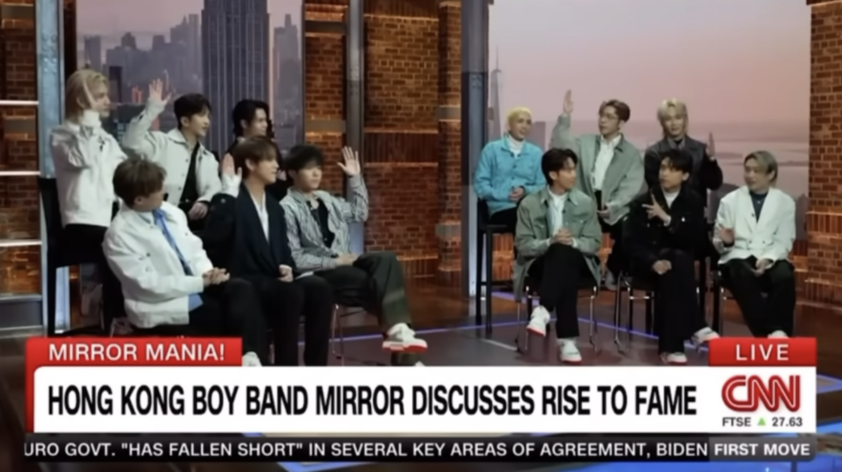 近日MIRROR成員相繼接受了國際媒體CNN及FOX電視台的採訪。在與CNN主持人的對話中,成員們大騷流利英語!當被問及「What is MIRROR?」時,成員陳卓賢(Ian)搶先一步回答他們是一群來自選秀節目的年輕人。接著邱士縉(Stanley)補充表示MIRROR的成員各有所長,不同的才華和興趣使MIRROR成為獨一無二的組合。而當主持人提到大家都誤以為他們是Kpop男團時,盧瀚霆(Anson Lo)特別強調MIRROR的特色在於他們唱的是廣東話歌曲。過程中成員們都展現了出眾的英語實力,對答相當流暢。