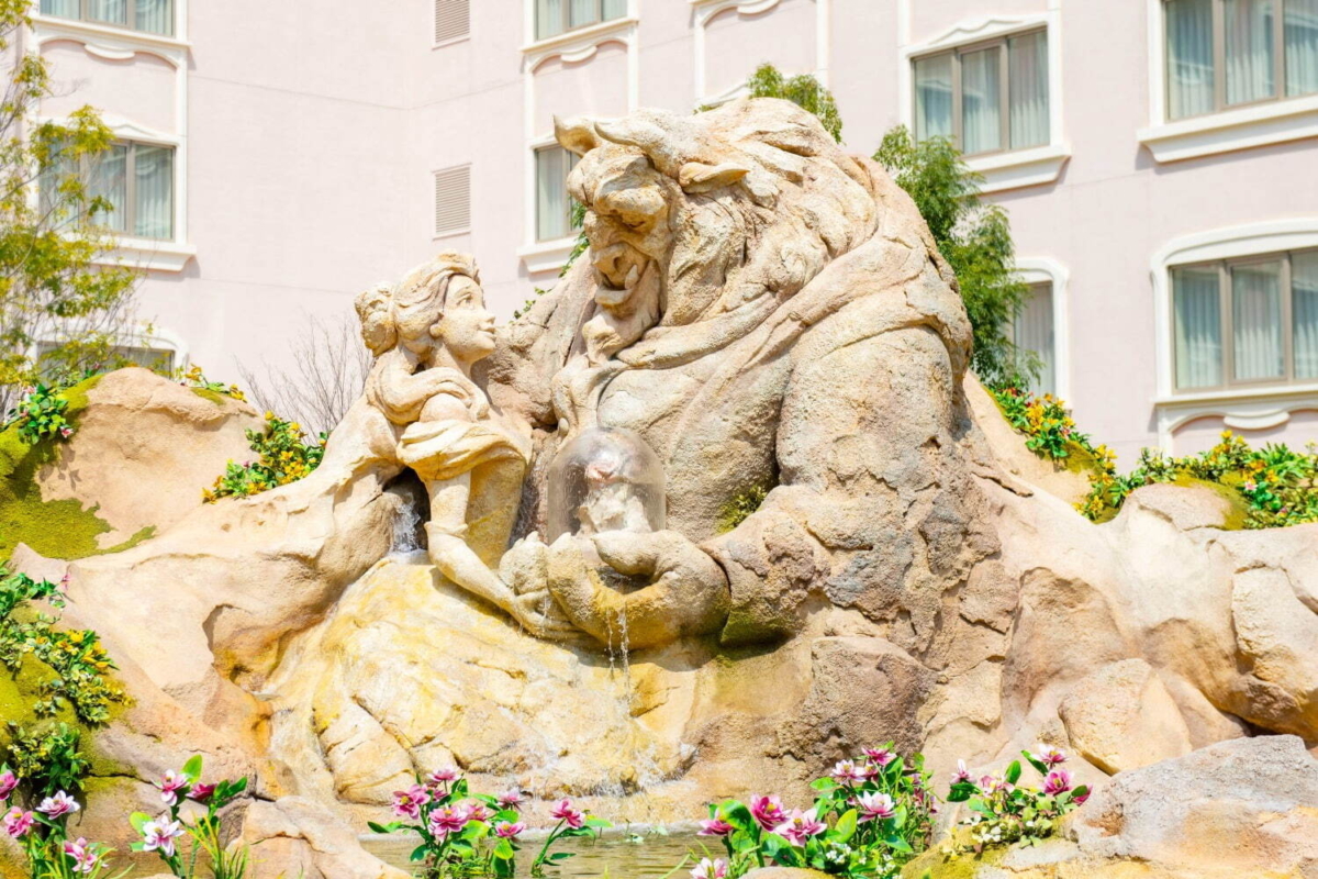 東京迪士尼海洋幻泉酒店內又有以《美女與野獸》中的人物岩石組成的魔法噴泉。