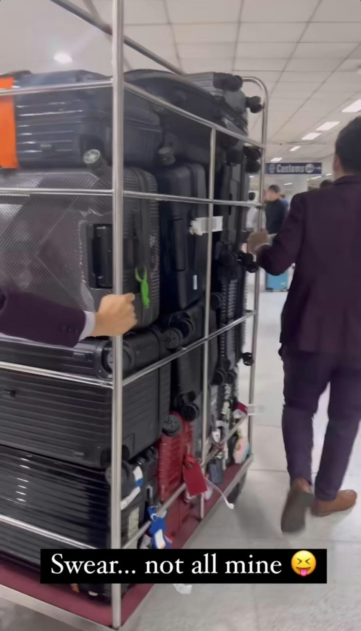日前林恬兒在IG分享與老公去外地旅行的限時動態,雖然兩人未有公開旅行地點,但從照片中可見是一個海島,景色優美。他們到達當地機場後,就有人拿著「E&K ANNIVERSARY PARTY」的牌接機,又有工作人員負責推行李,目測帶了13個行李箱出遊。