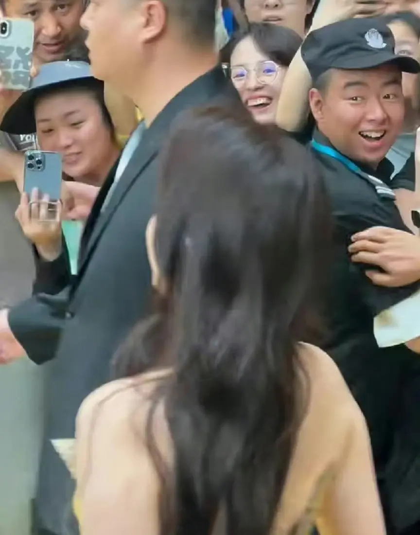 當劉亦菲一出場時,疑似因為美貌太驚豔,令當時在場正在維持秩序的一名保安也忍不住要轉身望向劉亦菲。而且最搞笑的是,該名保安雖然身體是背向住劉亦菲,但頭部已轉向她,而他更雙眼發光非常開心,還張開嘴巴,似乎已經被對方的美貌深深吸引住,視線在她身上離不開,其趣怪的表情瞬間成為網民焦點,紛紛留言:「要不是在工作早就拿起手機拍了」、「上班時間追星是吧?」、「眼睛裡突然出現了光」、「我會比他更誇張」等。