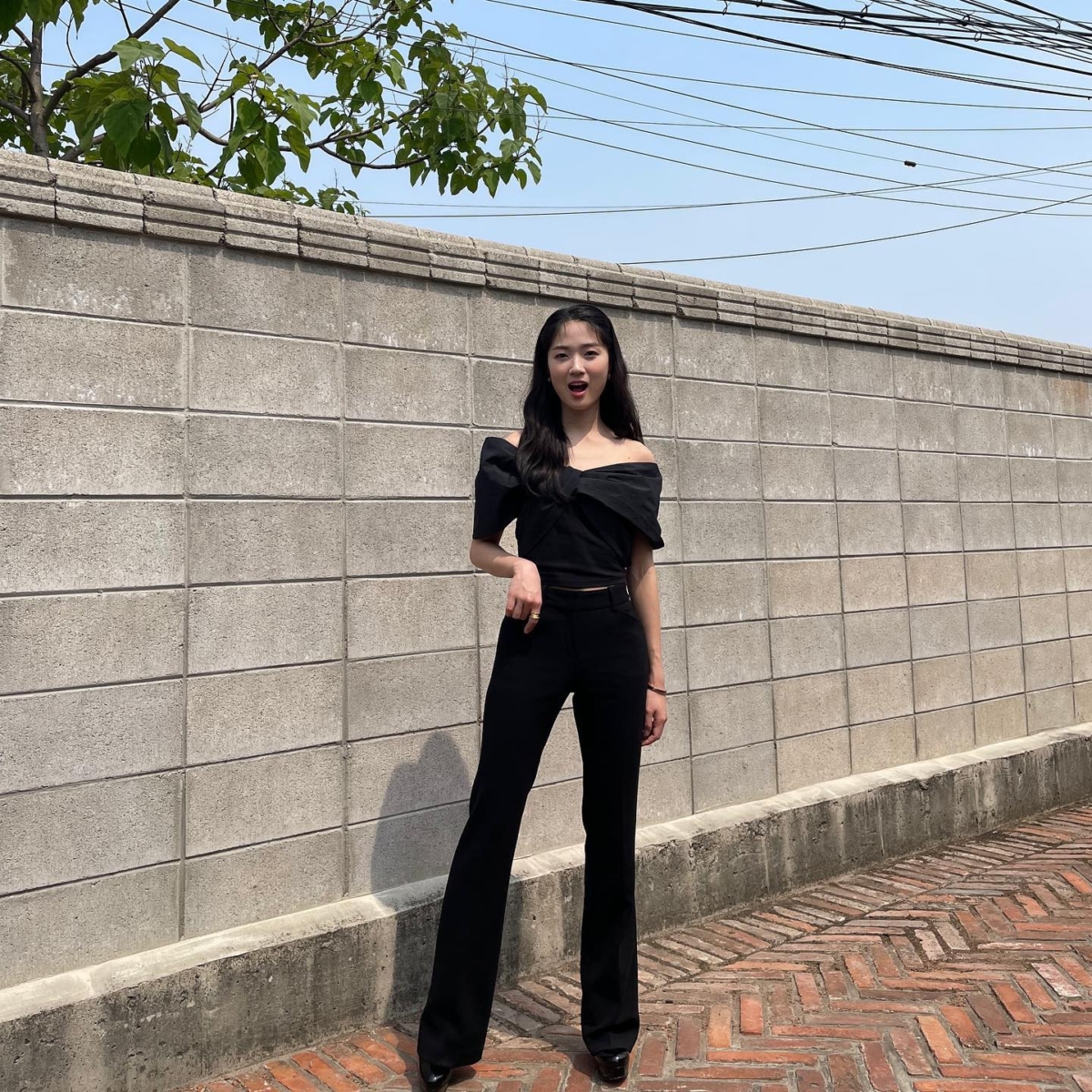 有時不一定要穿高跟鞋或是墊足鞋墊才能顯高!少女感十足的金惠奫間中也會展現出女人味的一面,嘗試穿上大領口設計的衣服,露出鎖骨和肩頸線條,能夠令人把焦點放在上半身,而忽略身型嬌小的問題,同時露出纖瘦的手臂更顯瘦~