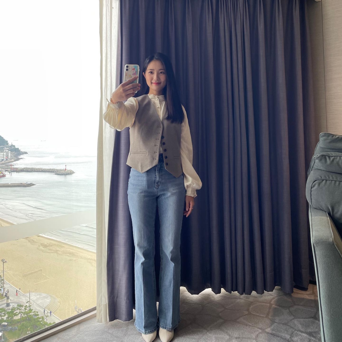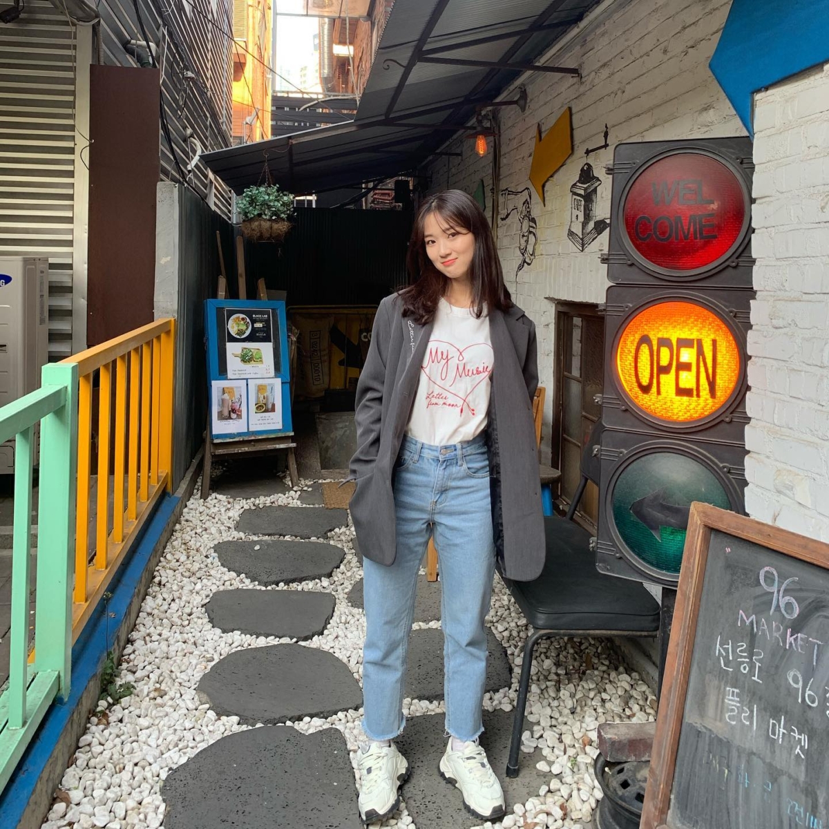金惠奫平時會做普拉提來鍛煉和保持身體的肌肉線條,所以身材曲線十分勻稱和修長。在揀選牛仔褲時,她多數會以合身的直筒牛仔褲為主,將筆直、修長的腿型完美展示出來,馬上高5cm的感覺~