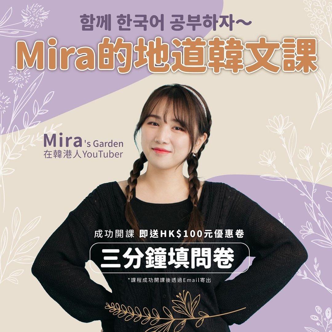 Mira本名嚴嘉欣。在未定居韓國,成為全職Youtuber之前,其實也是打工一族。一開始學韓語是因為工作期間經常接觸到韓國客人,覺得跟中、英文發音相似,應該不太難,所以就開始自學韓語3個月。之後更是到韓國讀了半年的韓文,這也讓她萌生想要旅居韓國的想法。